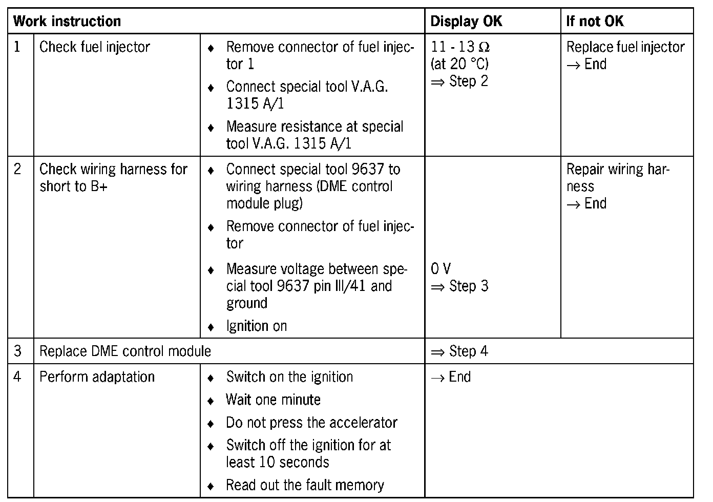 NOTE: Short to B+ causes the fuel injector to be continually closed.
