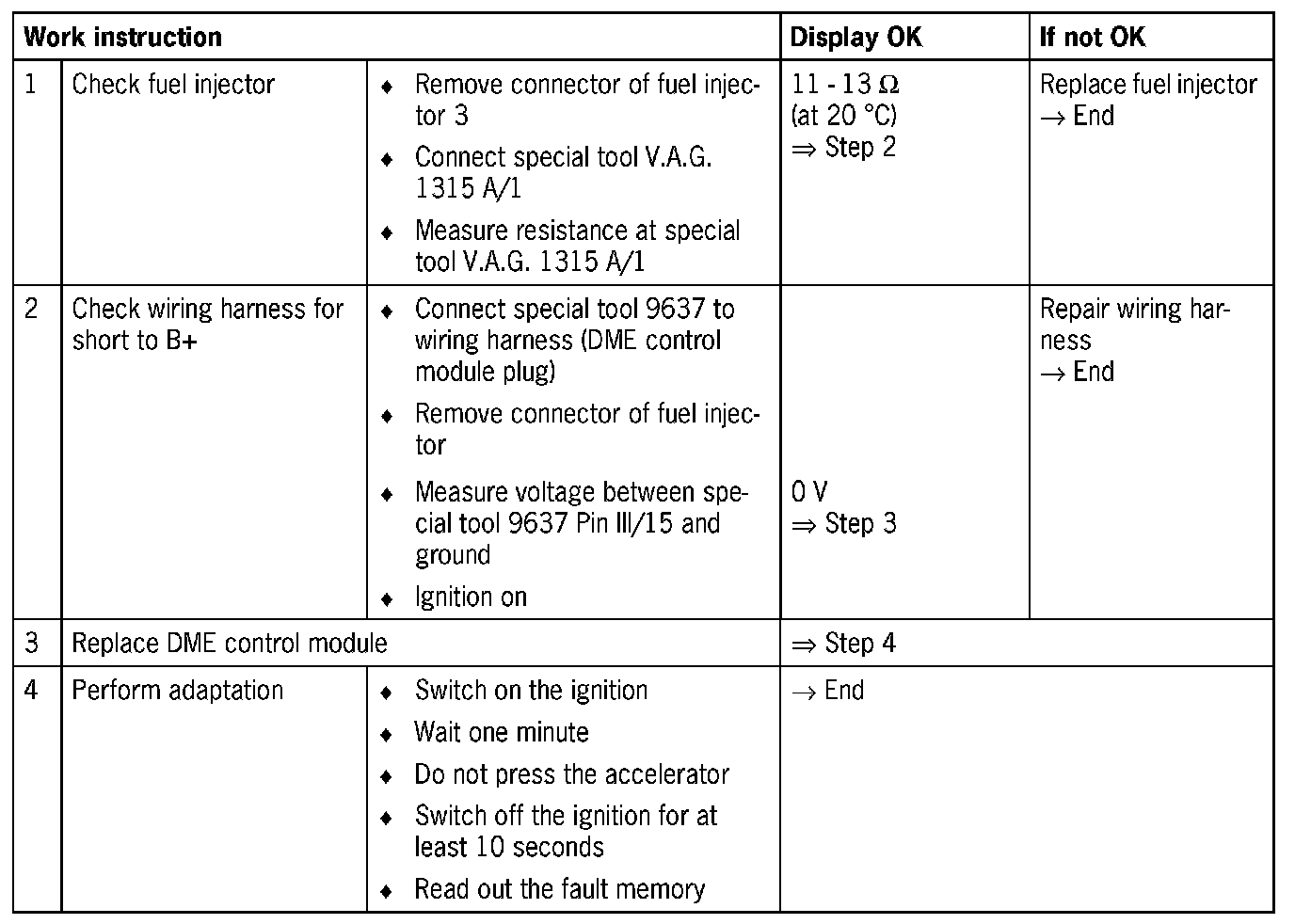 NOTE: Short to B+ causes the fuel injector to be continually closed.