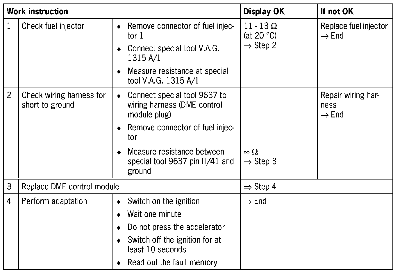 NOTE: Short to ground causes the fuel injector to be permanently open.