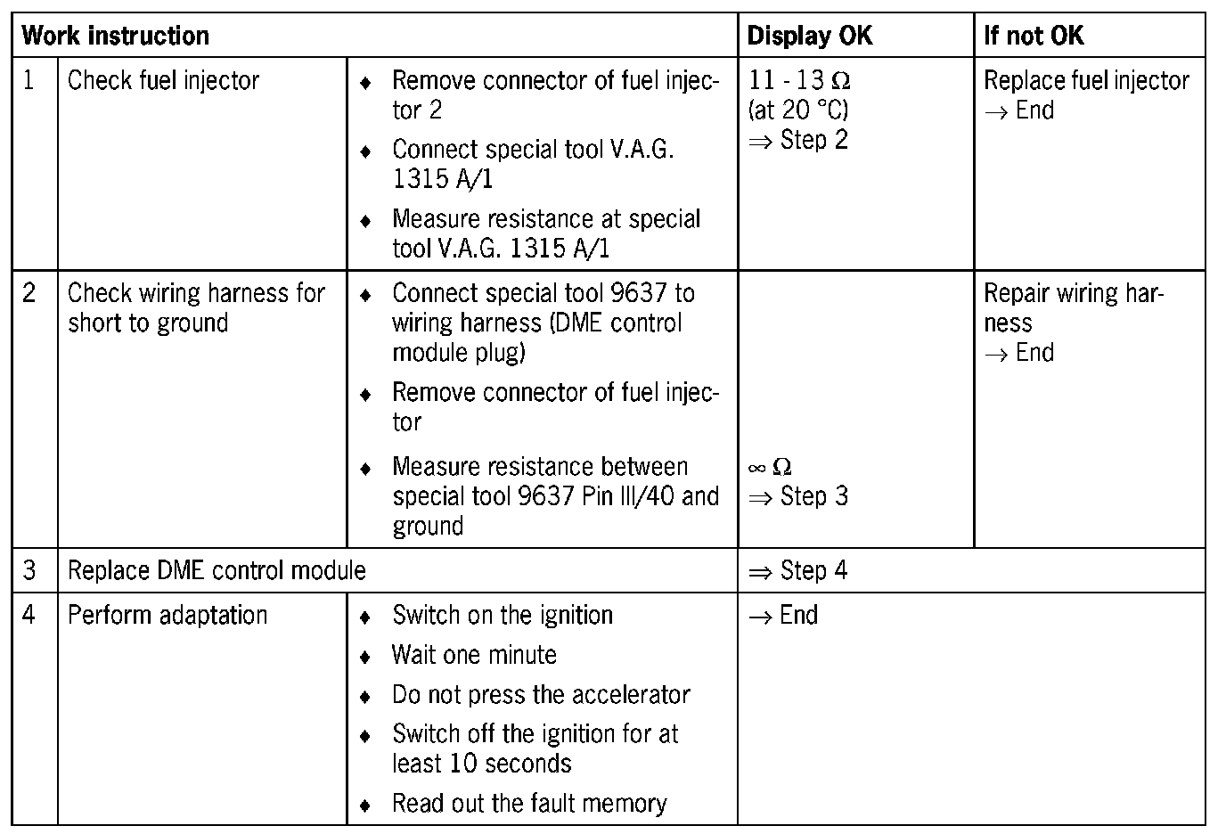 NOTE: Short to ground causes the fuel injector to be permanently open.