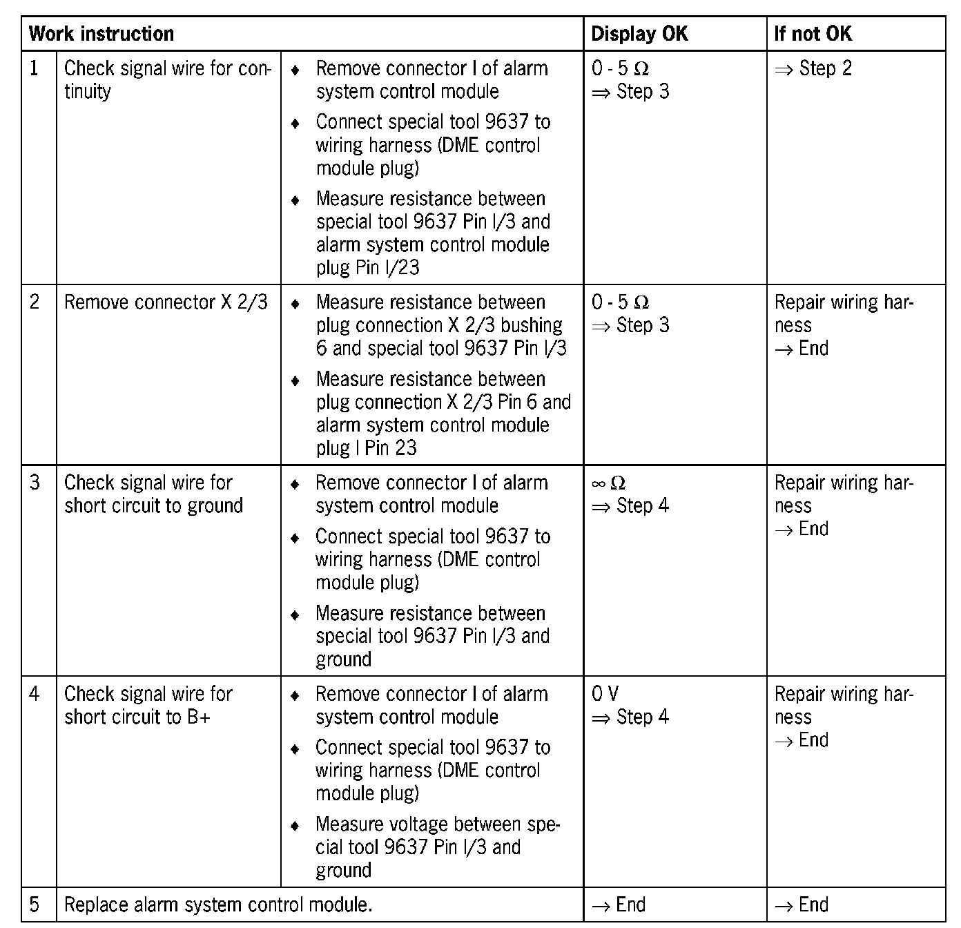 - Open circuit in wiring between DME control module and alarm system
