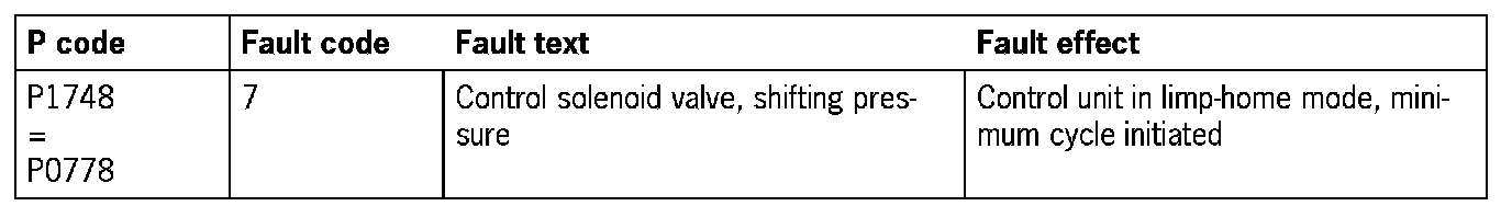 - The fault codes stored in the Tiptronic control unit for this P code are to be taken from the following table.
