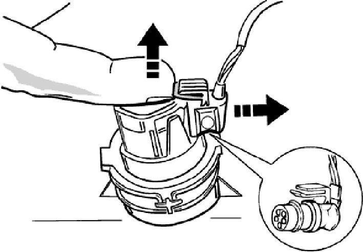 1. Take off rear spoiler Pull off electrical plug connection. Press together retaining spring at top and pull off.