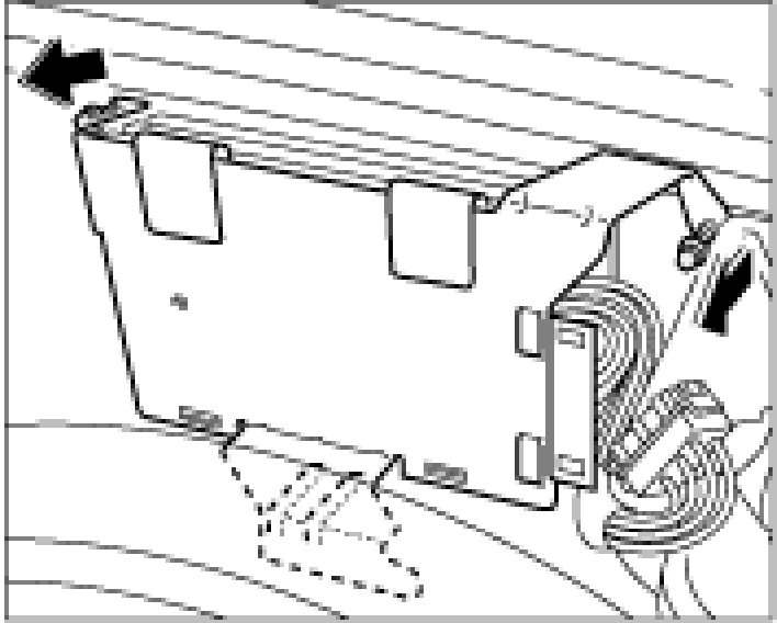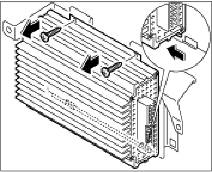 7. Unscrew both fastening screws and pull the amplifier from the fastening clips.