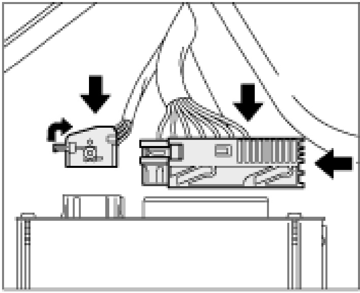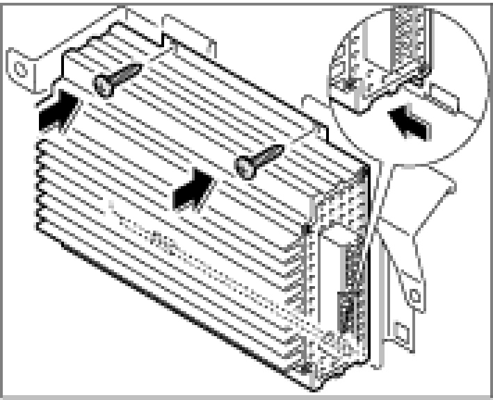 1. Insert the amplifier in the retaining clip and secure with the two fastening screws.