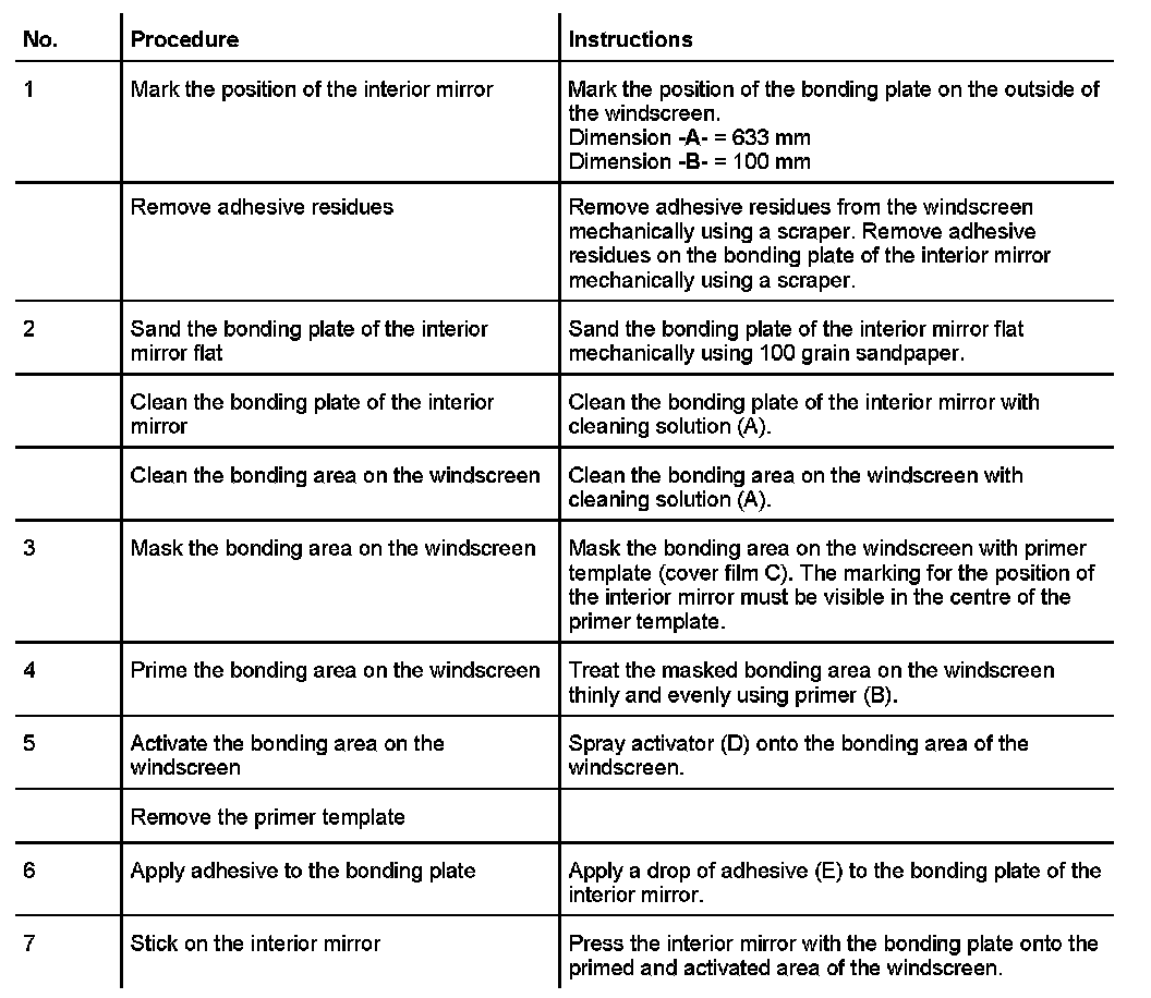 The following materials are required to bond on the complete interior mirror: