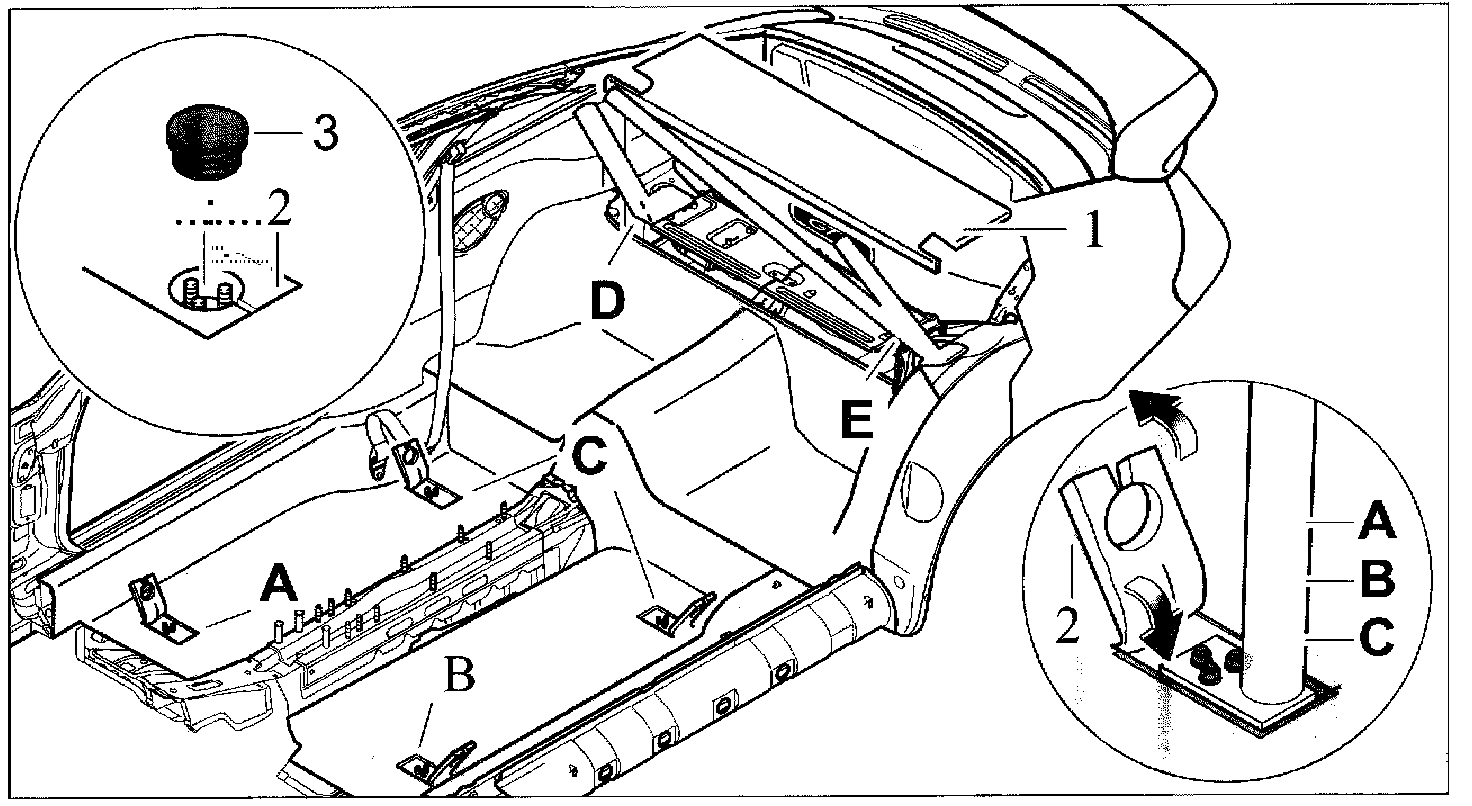 - If the car is to be used on the road again (after being used for racing purposes), it is advisable to remove the A-pillar struts again, depending on the size of the occupants. The rear section of the cage can remain installed permanently.