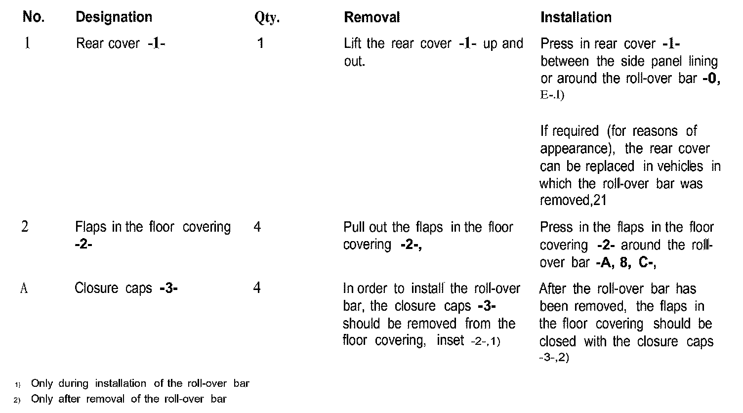 - The A-pillar struts should only be installed if the vehicle is to be used immediately on closed circuits.
