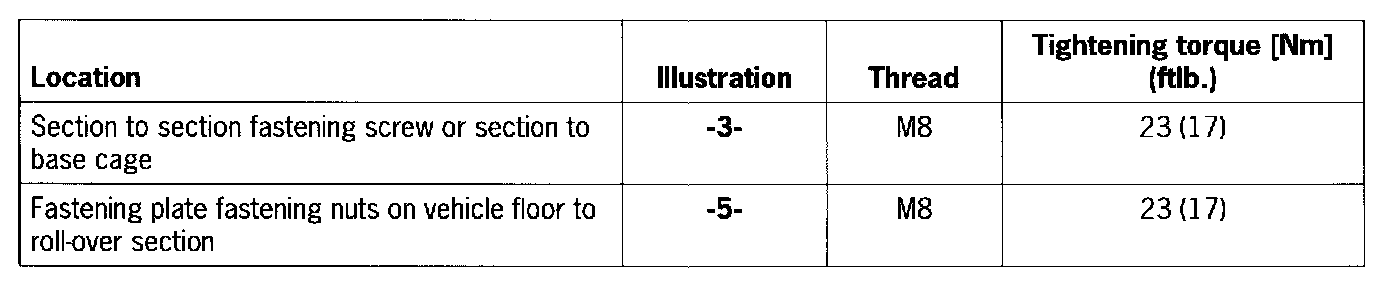 The screwed roll cage is not fully fitted on vehicle delivery if the vehicle is supplied with Club Sport equipment. The front sections (A-pillar support) of the roll cage which are delivered separately from the vehicle must be fitted on to the base cage.