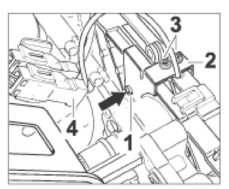 Undo fastening screw -1- and lift the retaining bracket -2- with microswitch up and out.