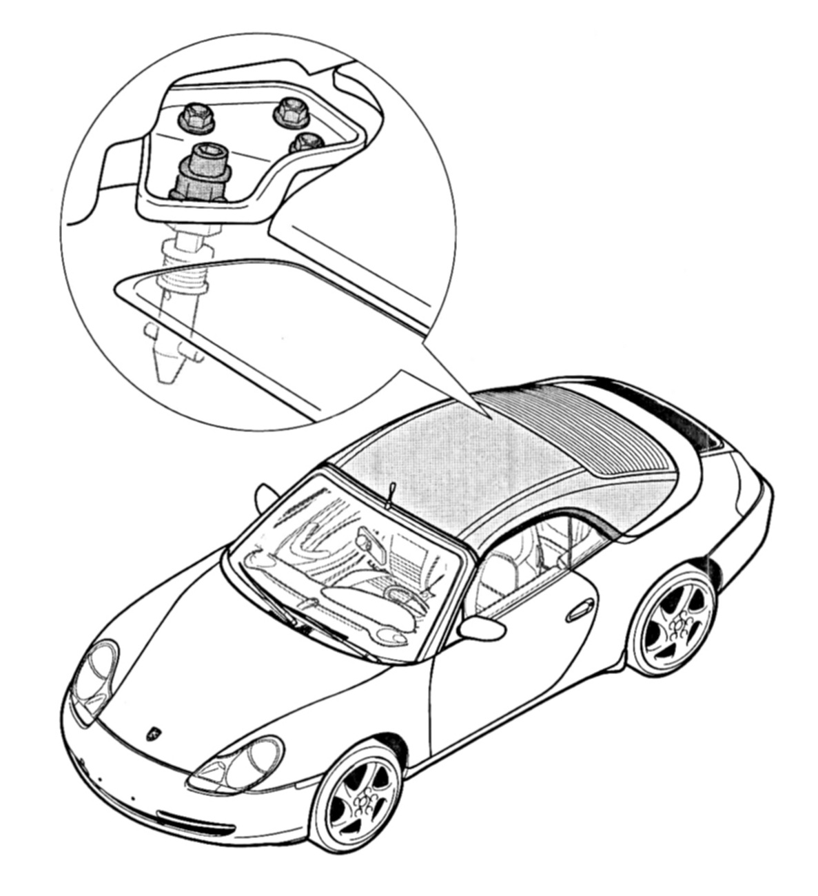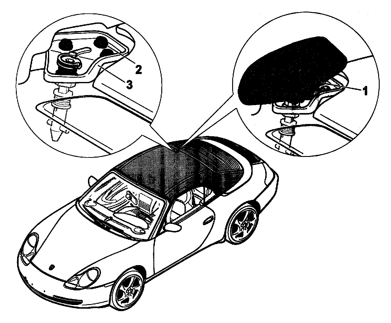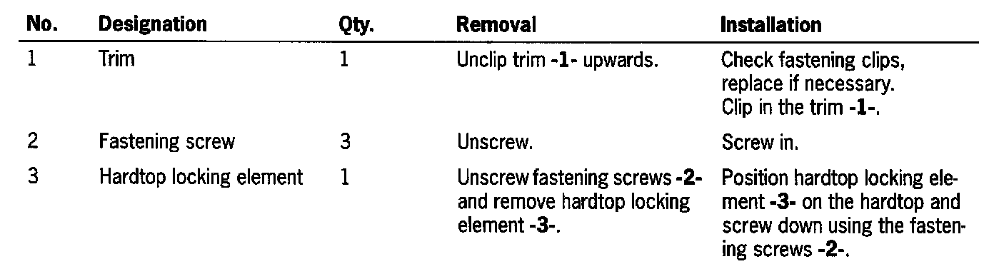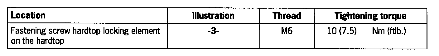 NOTE: The hardtop must be re-adjusted on the vehicle after replacing the hardtop locking element.
