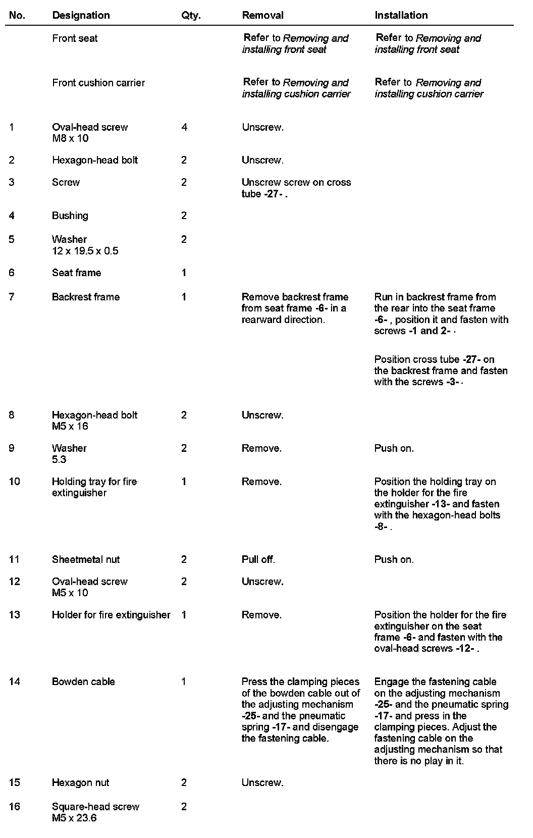 CAUTION: Risk of injury when removing and installing pneumatic springs.