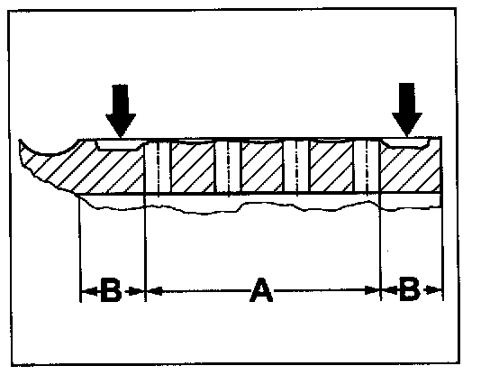 - As opposed to smooth brake discs, by which the minimum thickness is measured in the middle of the disc (effective friction radius), in the case of perforated brake discs, the minimum thickness must be measured on the inner or outer friction surface track, -arrows- whichever is most worn.