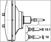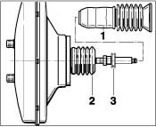 - The following parts are used in place of the removed parts -1 / 2 / 3- : Bellows -B- (already mounted on new brake boosters), connection sleeve -7.1- with sealing ring -7.3-, the seal for the firewall -7.2- and the hose clamps (clamps) -6 and 6.1-.