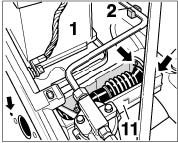 ^ To remove the intermediate piece -11-, the battery must be removed! This will prevent damage of the components in the surrounding area.