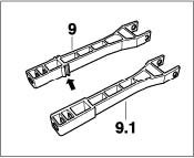 - The two push rods -12 and 9- are to be replaced with the modified version -12.1 and 9.1-.