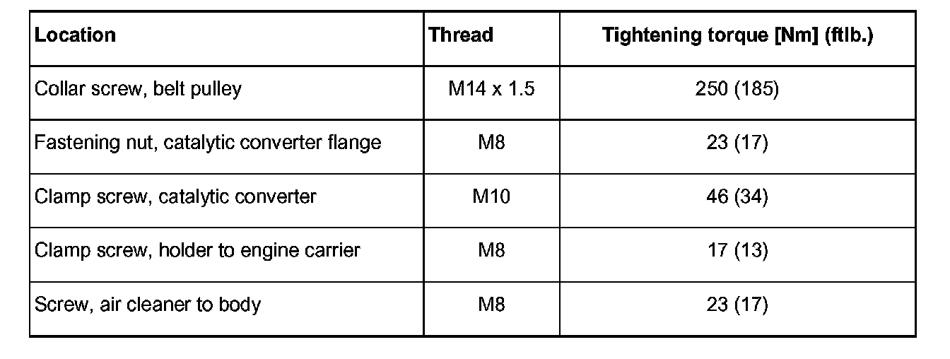 1. Fastening nuts for catalytic converterhaust manifold flange: 23 Nm (17 ft. lbs.)