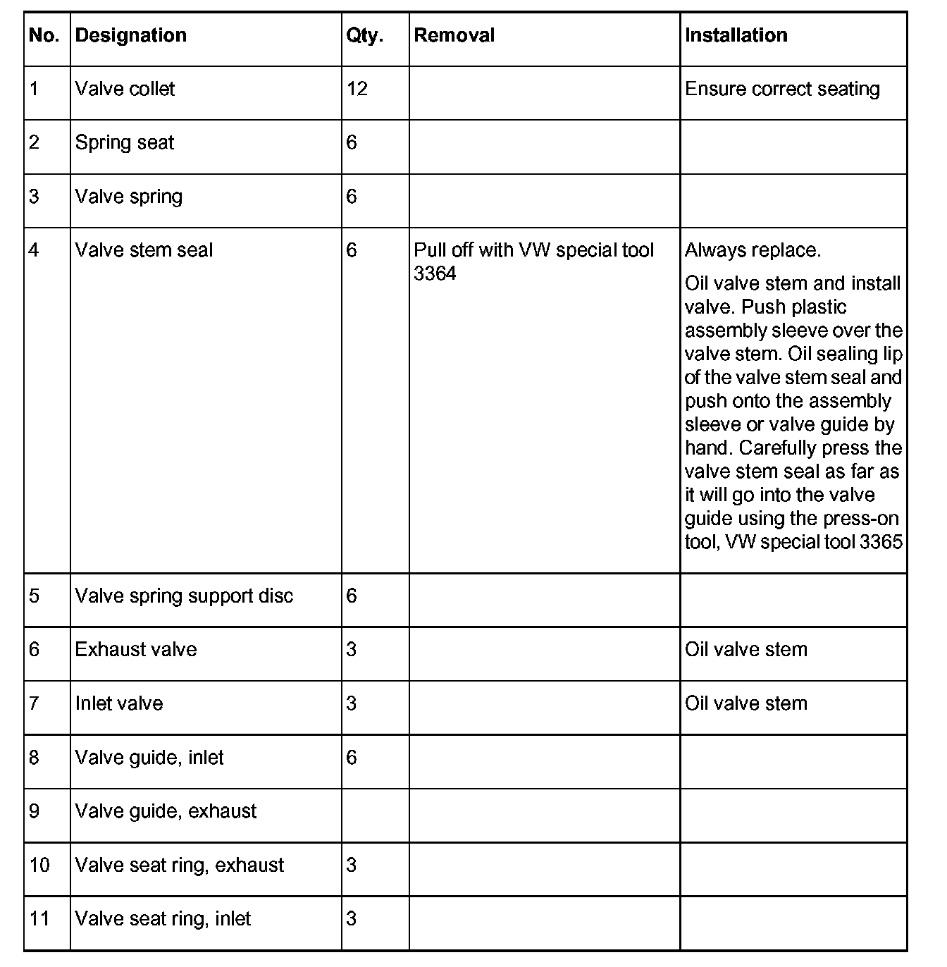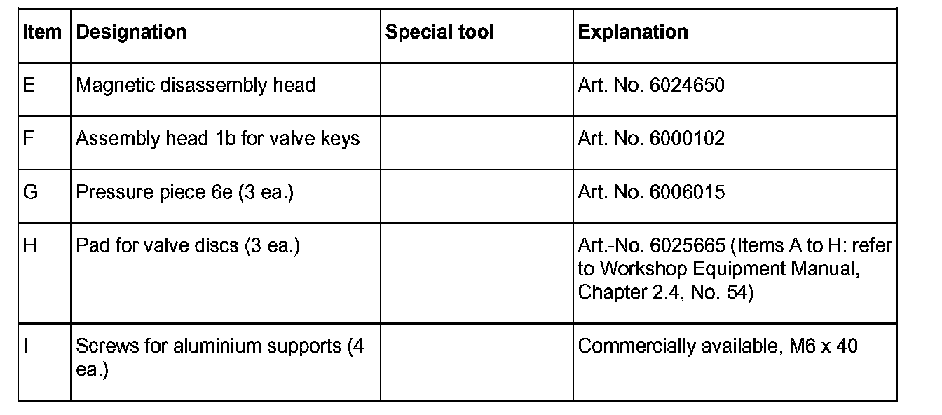 Disassembling and assembling cylinder head - Inner partsTools (commercially available)