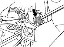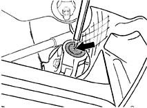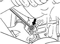 1. Turn shop-made extractor into centre of piercing point of closure cap and pull off the cap. Remove the upper closure cap; to do so, first undo the tailpipe fastening clamp and twist the tailpipe downward. Pull off the closure cap.