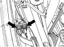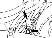 14. Disconnect plug-in couplings of the steering pressure line and the steering return line. The plug-in couplings are opened by unscrewing. (Return line