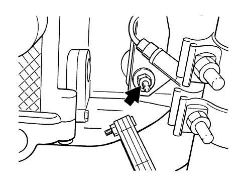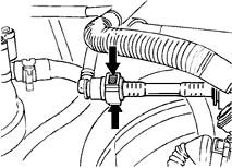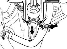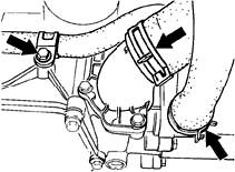 8. Undo coolant drain plug and drain the coolant; remove the coolant hoses. After draining the coolant, fit a new sealing ring on the drain plug. Tightening torque 10 + 5 Nm (7.5 + 3.5 ft. lbs.).