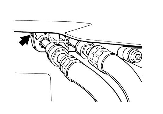 1. Before the engine is installed, prepare plug-in couplings of the steering lines for plugging together: