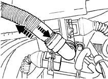 16. Disconnect vacuum line for the brake booster. Press the black unlocking ring (arrow) and simultaneously pull the line off.