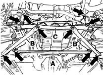 19. Raise the vehicle and remove the rear-axle drive shafts, diagonal braces, and front and rear cross members.