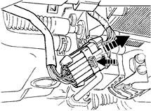 a: Suck Pentosin fluid out of the reservoir until the level is just below the joint. Turn bayonet lock in the direction indicated by the arrow and pull off the reservoir. Immediately seal the lower reservoir with a suitable plug (30 mm �).