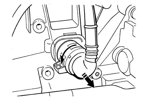 25. Turn round electrical connector (bayonet lock) in the direction indicated by the arrow and pull it off.