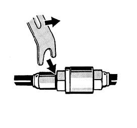 17. Disconnect plug connection of tank vent. Press unlocking buttons and simultaneously pull off the line.