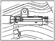 4. Place both steering lines into the holder, lift the bow and let it engage. Check whether the holder is seated properly on the body fastening point.