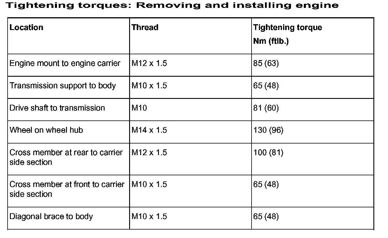 - Important: If the vehicle is placed on its wheels or moved in the workshop, the rear cross member should be fitted under all circumstances to maintain the structural strength.