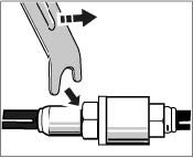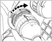 10. Insert servo container. Remove plug, insert container into the flange, turn bayonet lock clockwise -arrow until the markings of the flange and the container are aligned.