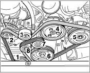 9. Fitting drive belt : Observe sequence when fitting -Fig.- the belt and direction of motion if the belt has been used.