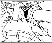 7. Fit air-conditioning compressor : before installing the compressor check whether the aluminum spacer sleeve -arrow- is inserted. Grease and fit sleeve. Also insert ground cable before installation.