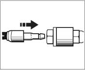 10. Insert servo container. Remove plug, insert container into the flange, turn bayonet lock clockwise -arrow until the markings of the flange and the container are aligned.