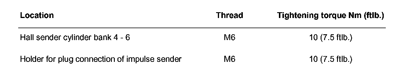 13. Fit hall sender on cylinder head bank 4 - 6. Replace micro-encapsulated M6 hexagon socket head bolt.