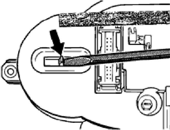 6. Push on the adjustment button of the clock and trip mileage counter.