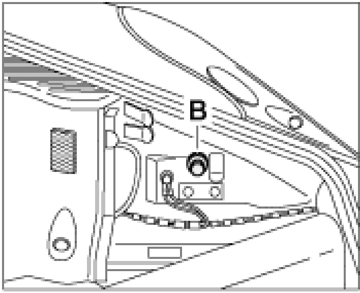 2. Pull rubber stopper -B- off the release opening.