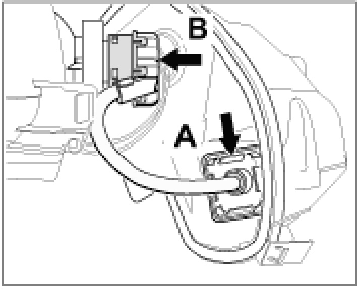 6. Unscrew electrical plug connection -B- on the gas discharge lamp (bayonet lock).