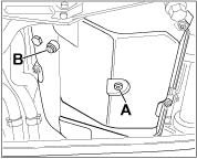 9. With engine running, top up ATF again until excess ATF emerges from the bore of the ATF control screw -B-.