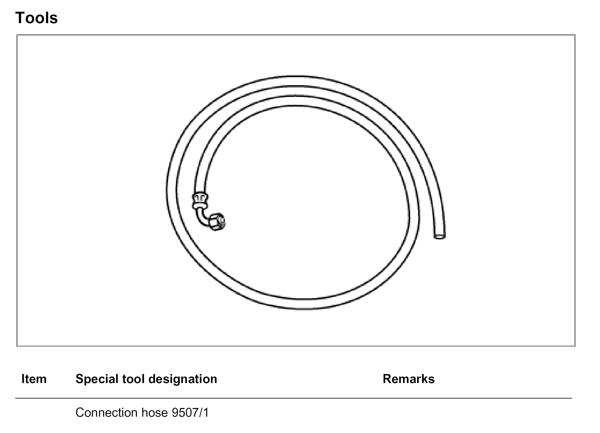 6. Screw connection hose 9507/1 -A- onto charging valve. Top up with ATF via the charging valve until surplus ATF runs out at the control screw bore.