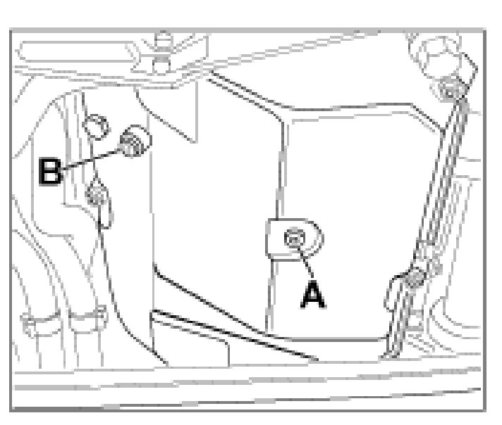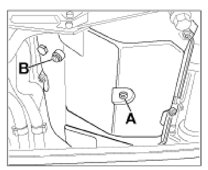 9. With engine running, top up ATF again until excess ATF emerges from the bore of the ATF control screw -B-.