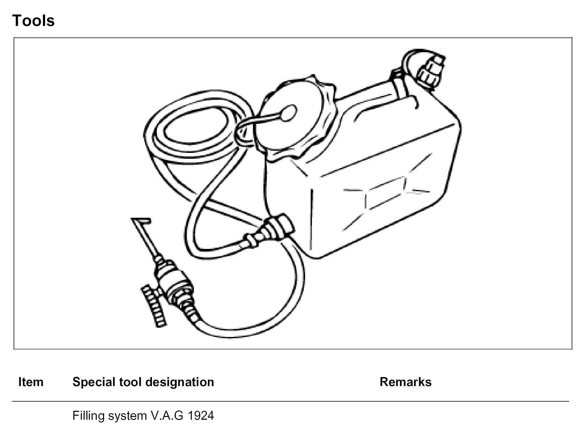 5. Fill in oil with special tool V.A.G 1924 up to the lower edge of the oil filler opening.