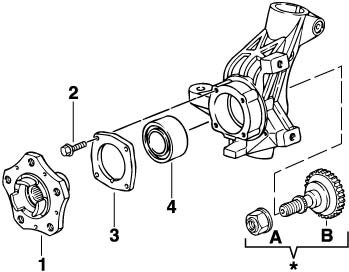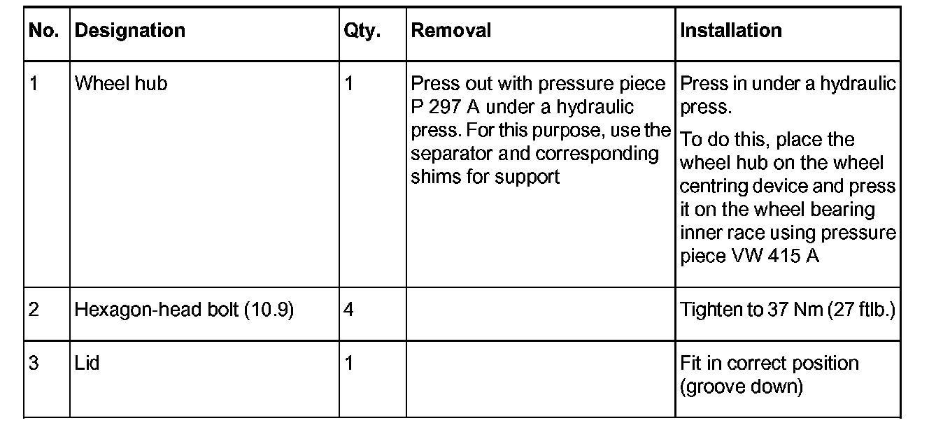 ^ The wheel bearing is removed and installed with the wheel bearing housing removed.