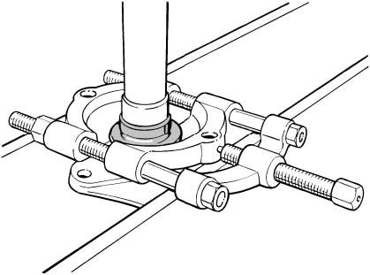 ^ First pull the inner bearing race several millimeters off the wheel hub (Figure 741_97) so that the separator can be put into place. For this purpose, use a two-claw puller in combination with a suitable pressure piece (e.g. VW 433).