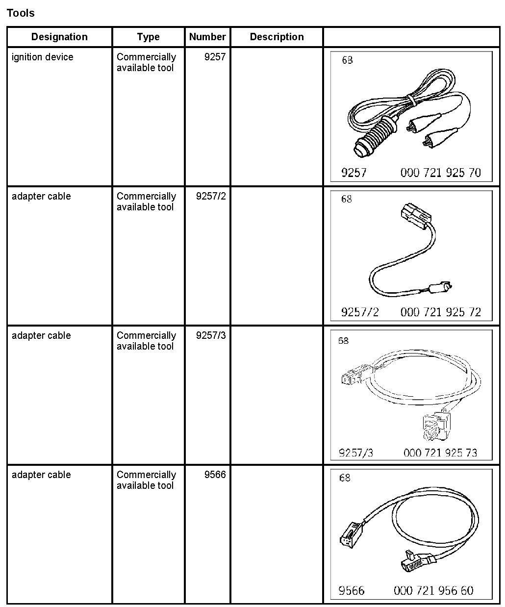 - If the vehicle had suffered fire damage which caused one or several airbags or the belt tensioner to be ignited, additional ignition with the ignition device 9257 must be carried out in order to ensure that only parts without pyrotechnical contents are scrapped.