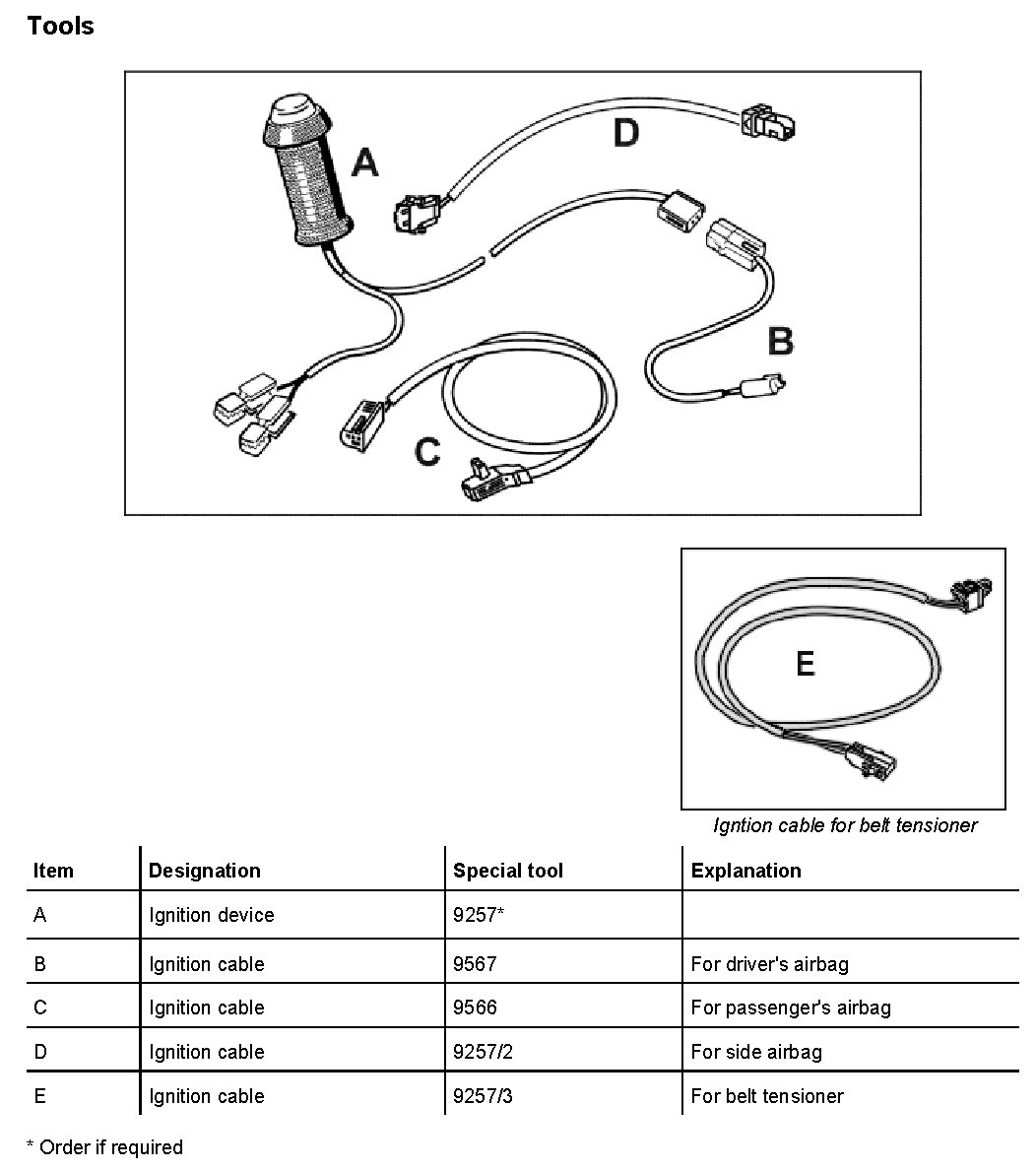 INFORMATION: The driver's and passenger's airbags and side airbags and the belt tensioner must be ignited separately.