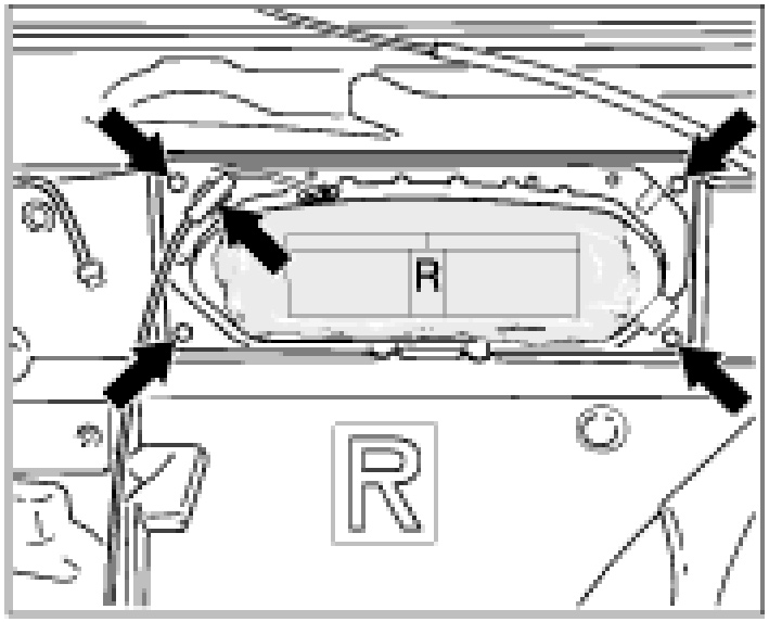 1. Install airbag unit with the inscription "R" in the right-hand door and fasten.